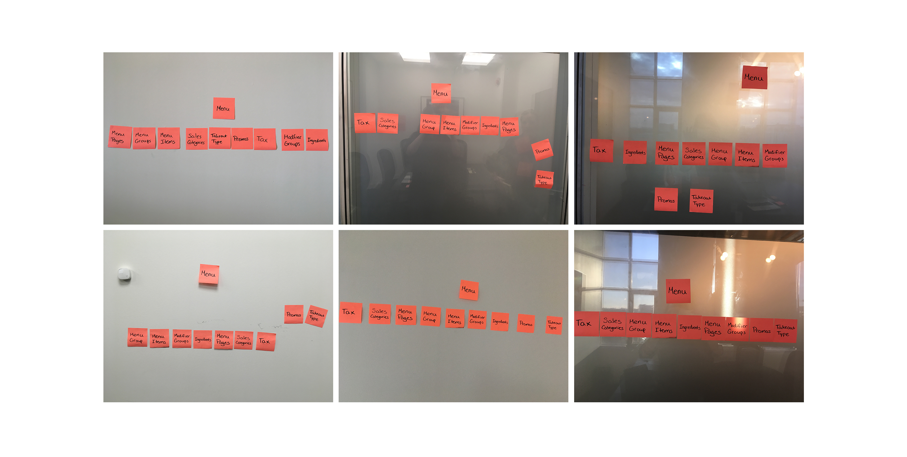 My initial question was how do I organize the menu? I conducted a card sorting exercise with restaurant managers and owners from our current customer base as well as our internal menu specialists. I wanted to find out how each of these users set up menus and why they did it that way. Due to our poor onboarding process to the product, I chose to set up the menu in the order required for a new user.