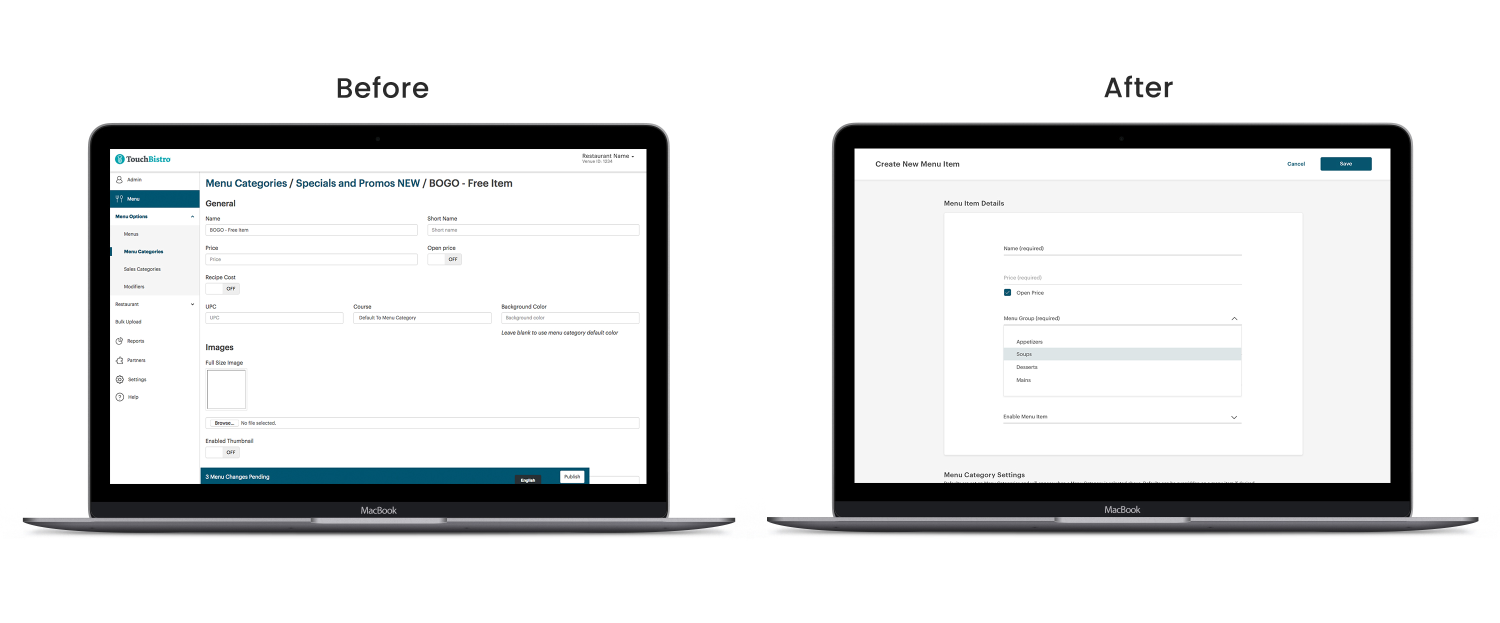 Not having a well-functioning feature accounted for a 30% loss of potential customers. One technical constraint I had to work within was that we weren’t updating menu management on the point of sale, therefore the two platforms had to have a certain set of similarities or else they wouldn’t be able to sync to one another.